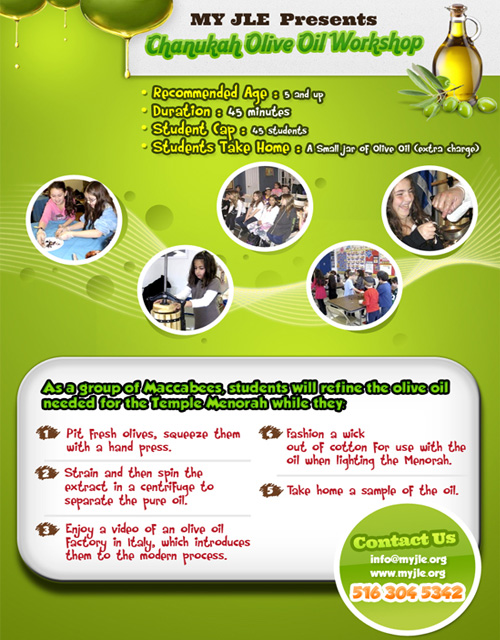 As a group of Maccabees, students will refine the olive oil needed for the Temple Menorah while they: